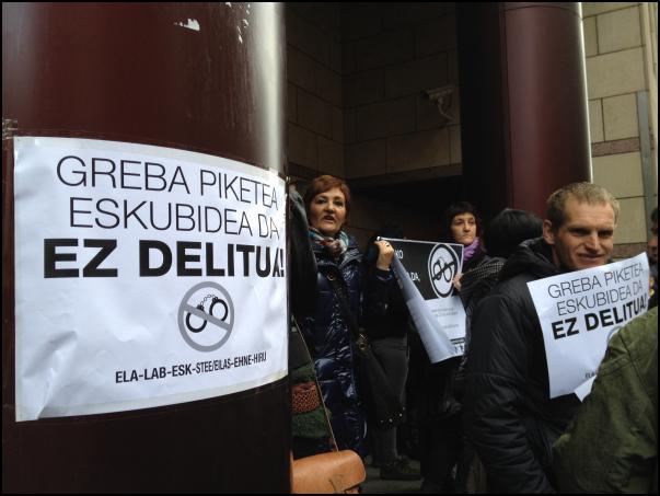 Bilboko Auzitegian epaitu zituzten hamazortzi lagunak, joan den asteko eguenean. Hain zuzen, informazioa banatzen pikete lanetan ari ziren lagun horietako bakoitzarentzat hiru urte eta bederatzi hilabeteko kartzela zigorra eta 6.000 euroko isuna eskatzen zuen Fiskaltzak, eta zigorra mantentzeko eskaera egin zuen epaiketan. Alabaina, auzipetuen aurkako froga nahikorik ez dagoela eta, epaileak egotzitako delituak onartu ezean koakzio delitua aintzat hartzea eskatu zuen, kasu horretan, zigorra zortzi hilabetekoa izango litzatekeelarik. Defentsak absoluzioa eskatu zuen, akusaziorik ez dagoelako eta ezer frogatutzat eman ez zelako.