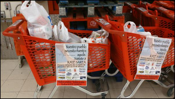 Hainbat arinen laguntza behar duten guztiengana heltzeko, lehenengo kanpaina bat abiarazi dute. Otsailaren 15era bitartean elikagaiak biltzen ariko dira herriko hainbat komertziotan, baita umeen elikagaiak be. Elikagaiak egoera onean egon beharko dira, ongi ontziratuta eta iraungitze-data luzea izan beharko dute. Higiene produktuak be hartuko dituzte.