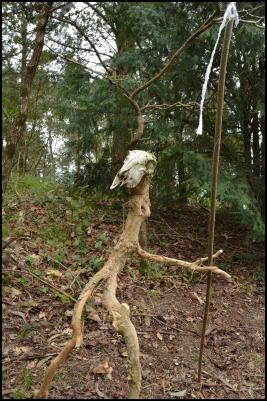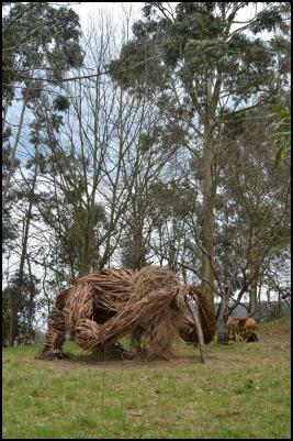 Erakusketaren protagonista nagusia Basajauna da. Rober Garay artista gernikarrak, Basajaun erraldoi bat egin du, egurrak, enborrak, zuhaitz adaxkak eta lianak erabilita. Euskal Mitologian oinarritutako erakusketa danez, gainera, Basajauna Anbotora begira dago. “Mari gurtzen dabil” azaldu du Garayk.