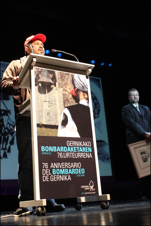 Nazioarteko saria be banatu dute Lizeo Antzokian, urtero legez. Hain zuzen, Brasilgo MSTak jaso du saria, lurrik gabeko nekazarien alde egindako lanari aitorpena emonez. “Gaur egun 350.000 familiak erabiltzen dituzten bost mila hektarea lur berreskuratu dituzte, bakearen eta justizia sozialaren alde eginez”. Joao Carlos Rodriguez mugimenduko kideak kartzelan dauden eta erail dituzten nekazari guztiak izan ditu gogoan hizketaldi labur baten. Haren berbetan, “lurrik gabeko nekazariek indarrak batzen jarraitu behar dute, sistema kapitalistaren kontra egiteko”.