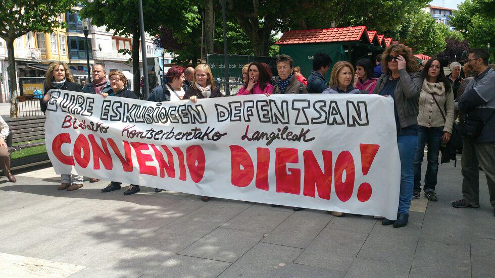 Bizkaiko kontserba enpresetako beharginek protesta egin zuten barikuan, Arrain Azokaren hitzordua aprobetxatuta. Hitzarmen duin bat aldarrikatzeko elkarretaratzea egin zuten, Lameran bertan.