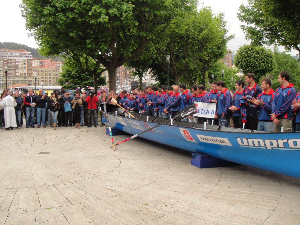 Domekan, entrenamenduaren ostean, Bou Bizkaia traineru barriaren aurkezpena egin zuen Bermeoko Urdaibai Arraun Elkarteak. Lameran bertan bedeinkatu zuten platano itxurako traineru barria, herritarren animo artean.