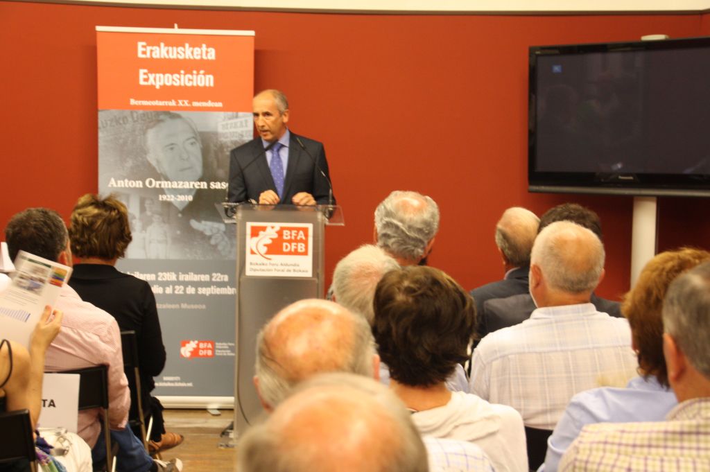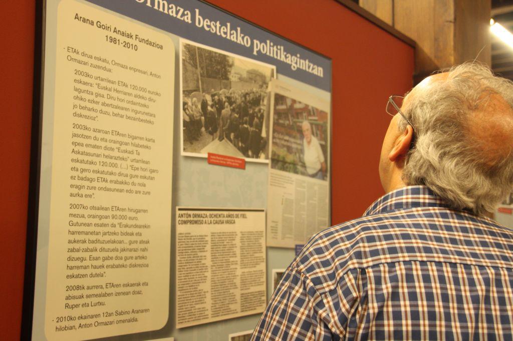 Anton Ormazak bere lanbidean, politikan eta kulturan egindako lana ikus daiteke erakusketan. Hori Ormaza Larrozea familiari esker egin ahal izan dutela aipatu zuen kultura diputatu Josune Ariztondok. Izan ere, “norberena den altxorra herriari eskaini gura izan dute”, azaldu zuen. Hala, familiaren dokumentu pribatuak, publiko bihurtu dituzte: “bizkaitarron eta euskaldunon ondare kulturala aberastea ez dela administrazio publikoen ardura erakutsi diguzue, baizik eta herritar guztiona”.