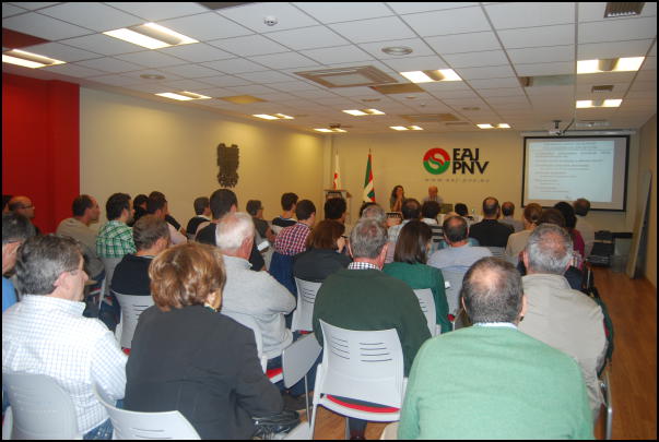 EAJren Euzkadi Buru Batzarreko presidente Andoni Ortuzarrek hitzaldia eman zuen atzo Gernika-Lumoko batzokian eta hainbat jelkide eta jeltzale bildu ziren bertan. Besteak beste, egoera politiko eta ekonomikoari buruz jardun zuen Ortuzarrek. Bukatutakoan, bertaratutakoen galdereei erantzuteko tartea hartu zuen.
