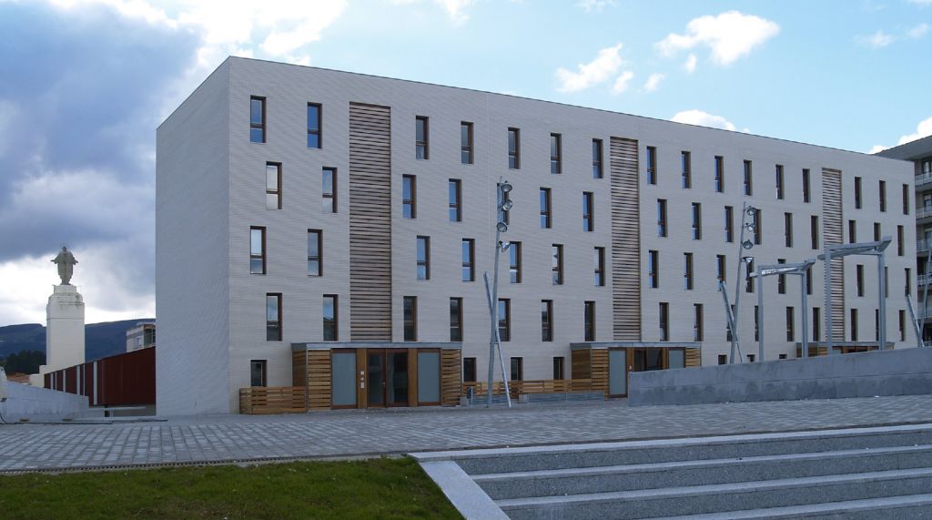 Hegoaldeko fatxada baso jasangarrietako egurragaz egindakoa da, eta, esan dutenez, eguzki izpiak modu pasiboan har zitzan diseinatu zuten. Horretarako, leiho handiak eta inertzia termiko handiko zolaketa iluna jarri zuten. Iparraldeko aldeak, aldiz, adreilu keramiko zuriz jantzi zuten.