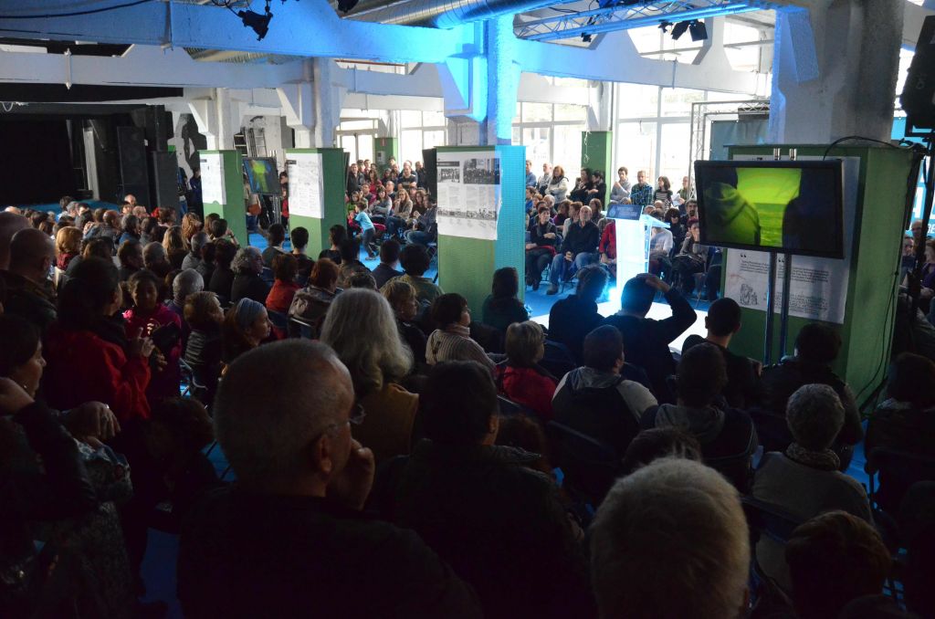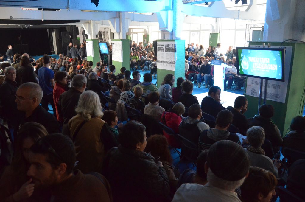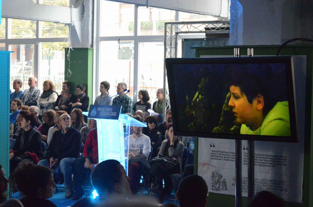 Eszenifikazio mamitsuaEuskal Herriko bazter guztietako hainbat lagun izan dira Gernika-Lumoko Astra kulturarako fabrikan jarritako hitzorduagaz bat egin dutenak, eta agerraldi jendetsua egin dute. Hori orduko, ekitaldi mamitsu eta ikusgarria hareazko marrazkien ikuskizun batekin hasi dute, eta ondoren bideo batekin laburbildu dituzte gerora azaldu dituzten helburuak eta filosofia.