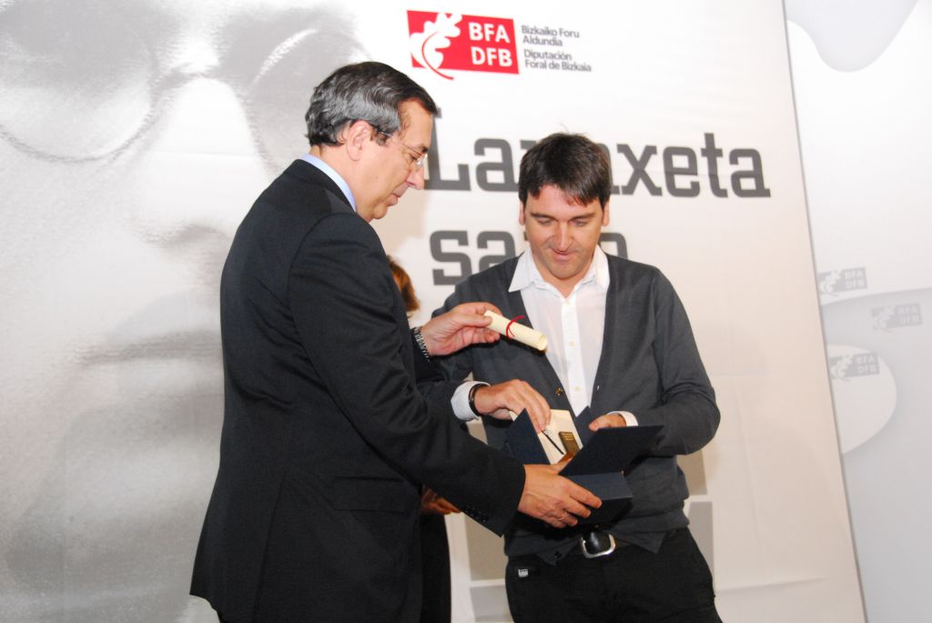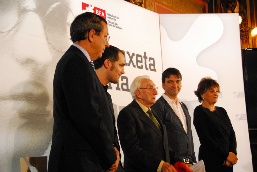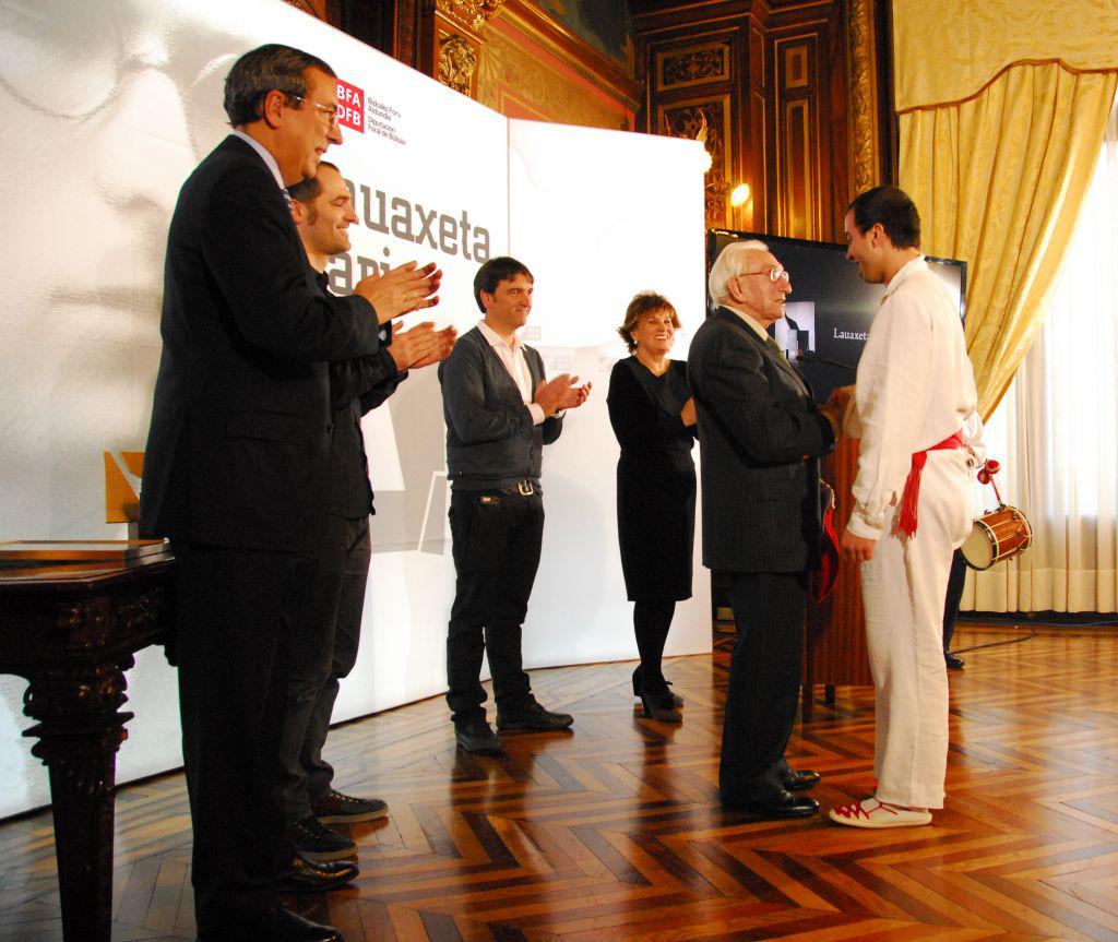 Foru Jauregian jaso du Lauaxeta Ikus-entzunezkoen Saria gaur eguerdian bermeotarrak, Jose Luis Bilbao Bizkaiko Ahaldun Nagusiaren eskutik. Bermeotarrak