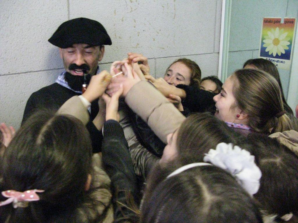 Olentzero ere azokan izan da, “oso lanpetuta”, gainera; “ume asko izan direla euren eskutitzak eroatera azokara bertaratu direnak”.