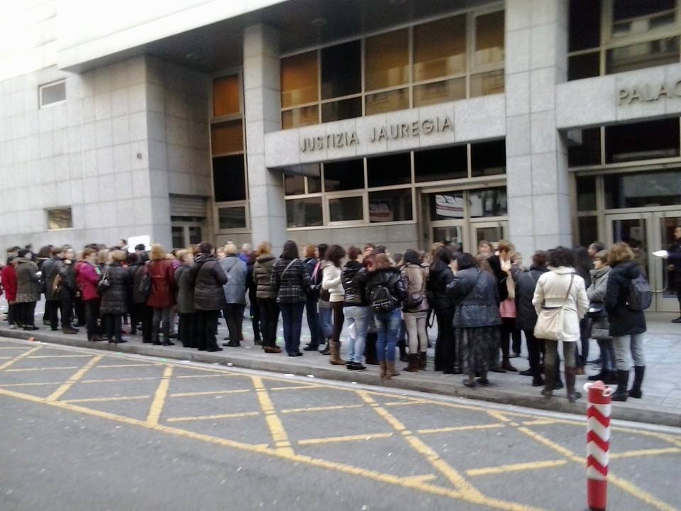 Gaur goizean, Bilboko epaitegian batu dira kontsreberatako langileak. Argazkilaria: LAB sindikatua