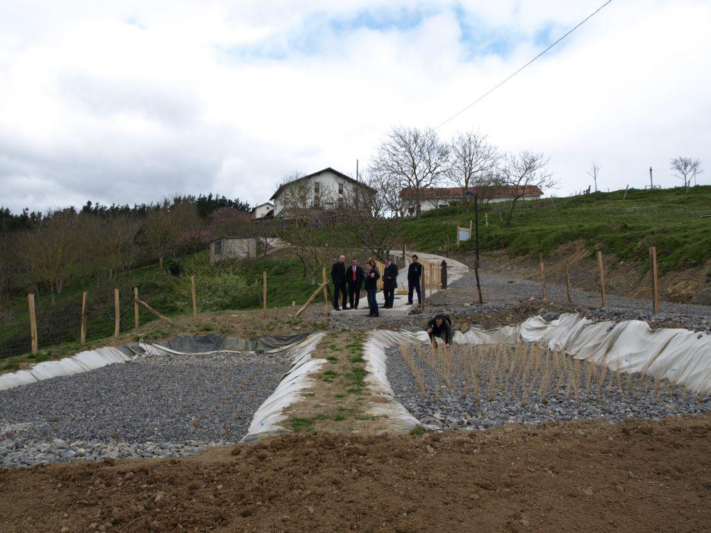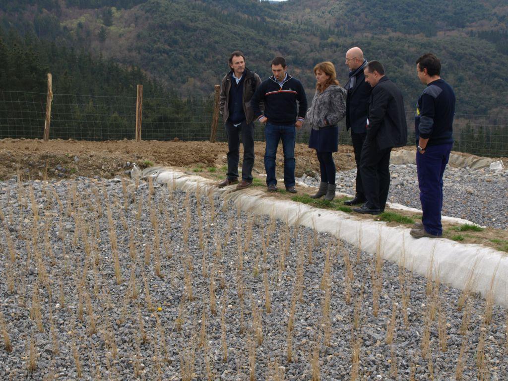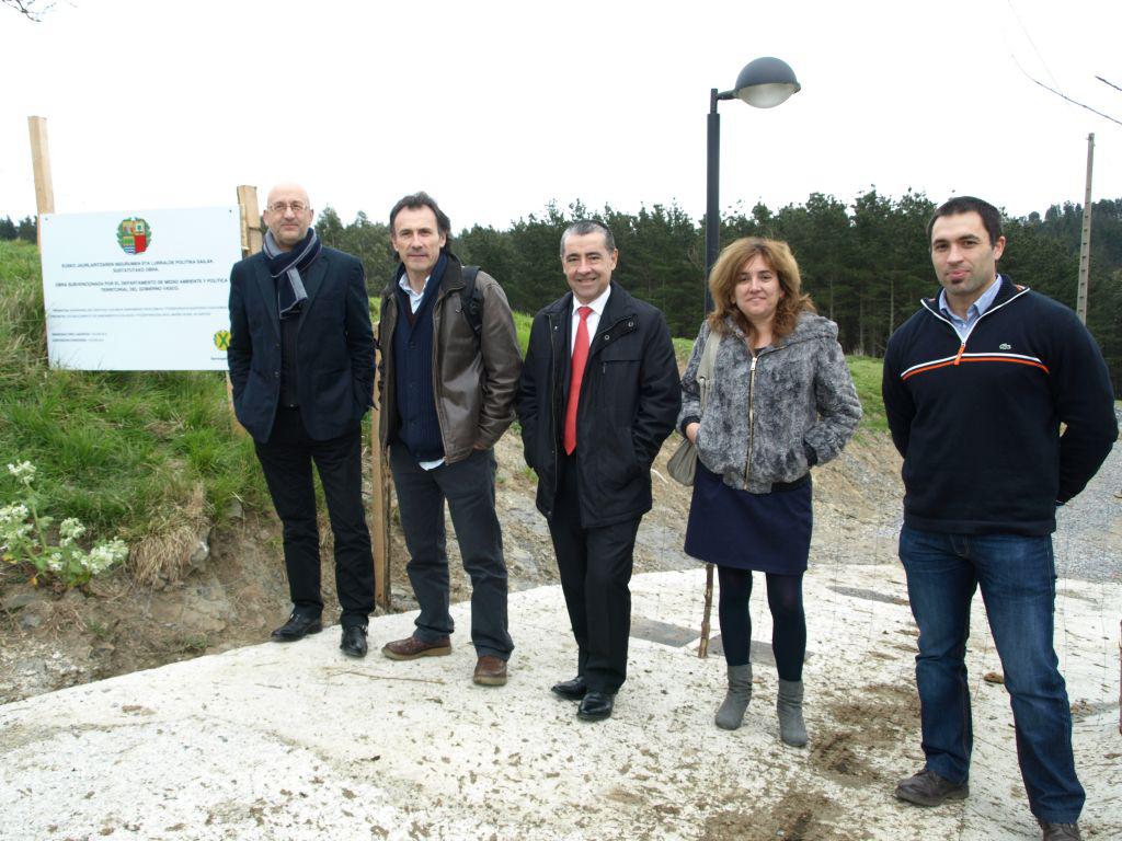 Eusko Jaurlaritzako eta aldundiko ordezkariak eta Ibarrangeluko alkatea, atzo, Garteizen