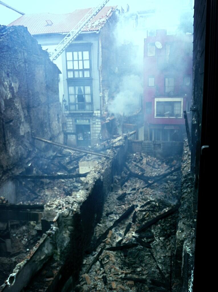 Etxea eta negozioa galdu zituen Mikel Izarzugazak orain urtebeteko sutean. 2013ko apirilaren 11 hartan emazteak esnatu zion, balkoitik suzko bolak ikusi zituela esanez. “Ametsetan zegoela eta berriro ohera sartzeko agindu nion; baina ez zidan kasurik egin. Besotik heldu eta ohetik altxarazi ninduen. Balkoira joan eta bai, suzko bolak ziren”. Umeak hartu eta beheko solairuan zuten harategian gorde zirela gogoan du Izarzugazak; “baina han ere ez geunden seguru, eta aukera izan genuenean kalera atera ginen, Goiko plazara”. Kanpora atera zirenean ohartu ziren ez zela euren etxea sutan zegoena; baina goizaldeko 05:30ak aldera hego haizeak jo eta sua ondoko eraikinetara zabaldu zen: “Gure eraikineko laugarren eta bosgarren pisuak guztiz erre ziren. Sua ez zen beheko pisuetara heldu, baina suhiltzaileek sua amatatzeko erabiltzen dituzten produktuen eraginez etxe guztia alperrik galduta geratu zen, baita harategia ere”.