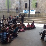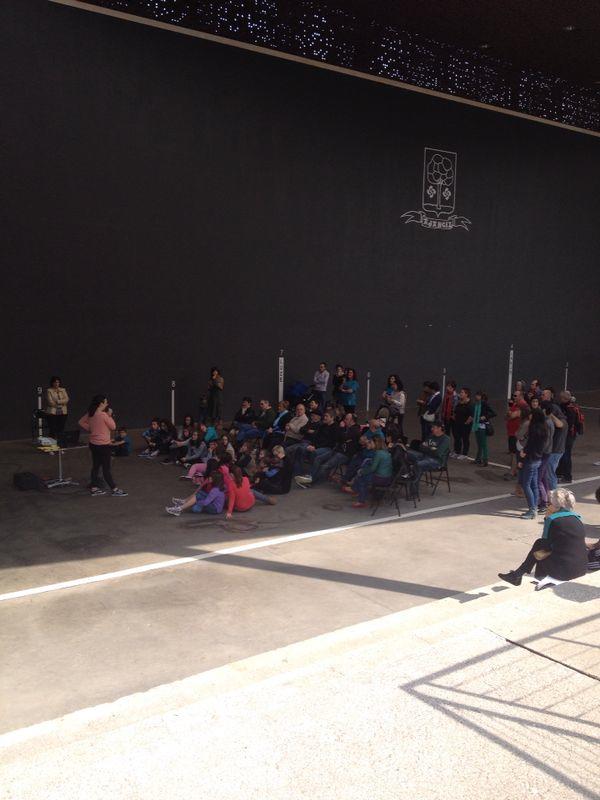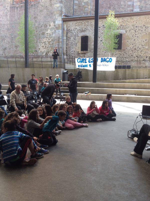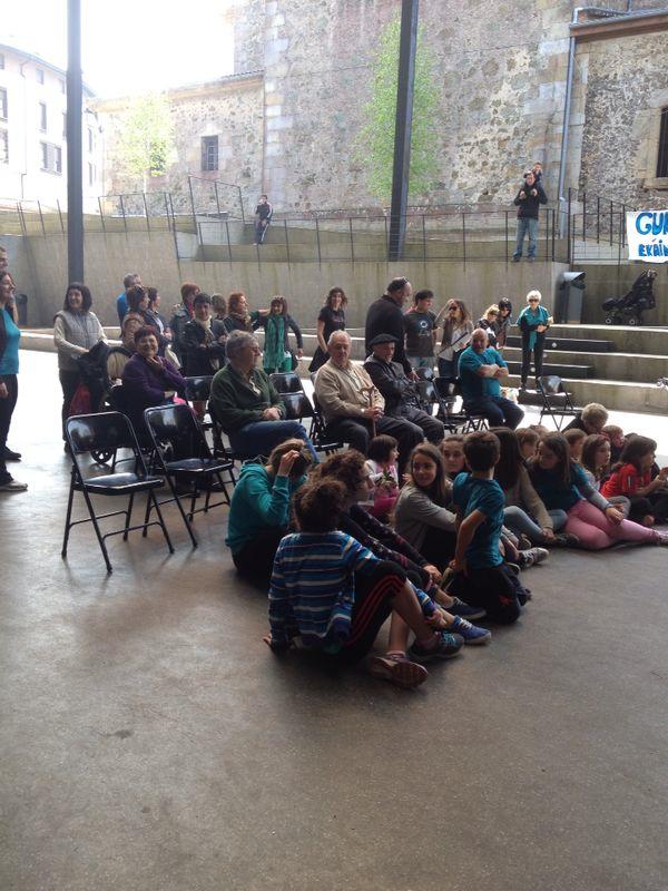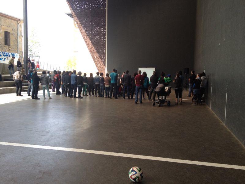 Ekitaldiaren ostean pintxo-triki-poteoa egin zuten ajangiztarrek, eta goizean zehar ekainaren 8an Durango eta Iruñea lotuko dituen 123 kilometroko giza katean parte hartzeko metro sinbolikoak erosteko aukera eduki zuten. Bide erdia baino gehiago eginda dagoen arren, nork bere harri koxkorra jartzeko garaia dela esan du Gure Esku Dagok, eta, beraz, herriz herri zabaldutako bulegoetan nahiz kalean jartzen ari diren mahaietan metroak erosteko deia egin die herritarrei.