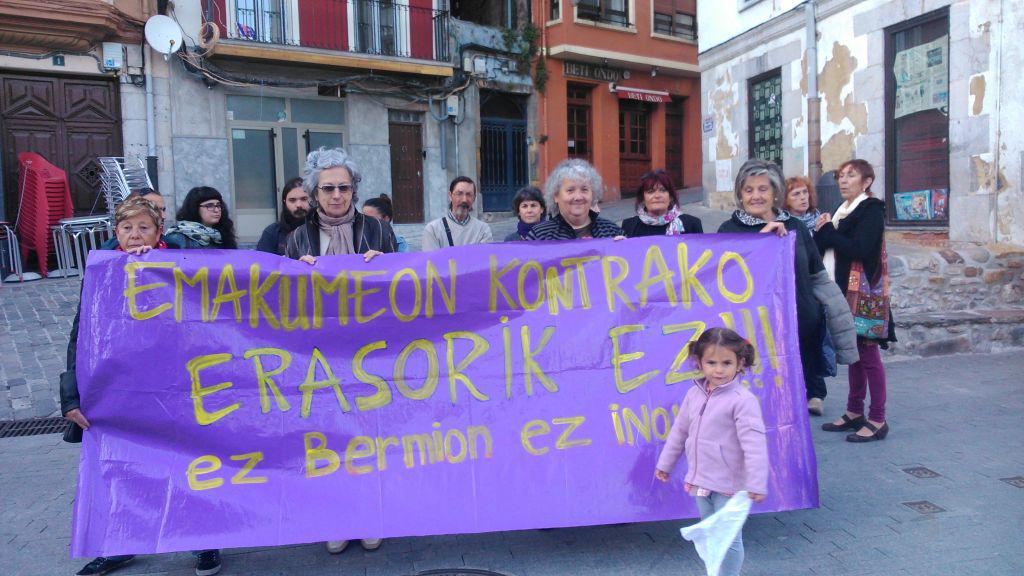 Emakumeon kontrako erasorik ez! Ez Bermeon ez inon! lelopean elkarretaratzea egin zuten atzo Bermeon. Izan ere, Eusko Jaurlaritzako Segurtasun Sailak jakinarazi zuenez, gizonezko bat atxilotu zuen Ertzaintzak domekan Bermeon, bikotekidea erasotzea egotzita. Ertzainak erasoa gertatu zen lekura bertaratu eta biktimak sama gorrituta zeukala eta iztartean beltzune bat zuela ikusi ahal izan zuten. Gainera, biktimak berak ertzainei jakinarazi zien legez, “ez zen lehen aldia” bere bikoteak erasotzen eta tratu txarrak ematen zizkiola.