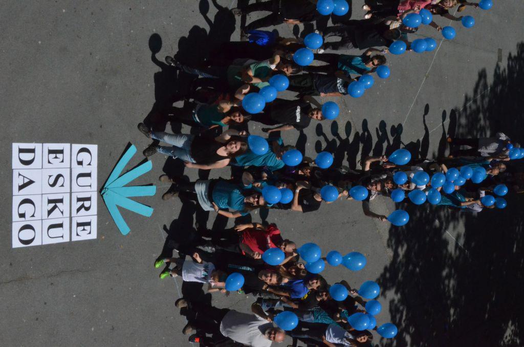 Gernika-Lumon, esaterako, mosaiko erraldoi bat egin zuten herritarrek. Bildutakoek esku handi bat irudikatu zuten. Mosaikoarena, baina, ez zen eguneko ekintza bakarra izan. Gernikarrek triki-poteoa eta lagunarteko bazkaria ere egin zuten. Busturian ere, jendez osatutako mosaikoa egin zuten.