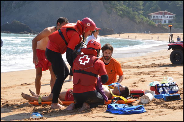 Lehenengoan sorosleak uretatik irten ezinik eta itotzen zegoen herritar bat ikusi eta berehala sartu dira uretara. Bata igerian heldu da, eta beste bat uretako motorrarekin hurreratu zaio. Bien artean moto gainera igo, eta hondarretan etzanda erreanimatu dute. Ostean sorospen lekura eraman eta ondo zegoela ziurtatu arte eduki dute han.