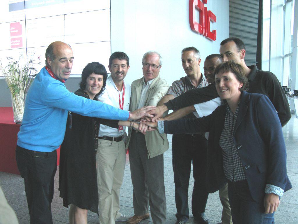 Ezkerretik laugarrena, Maierreko lehendakari Julen Madariaga; eta bosgarrena Gotzon Juaristi, Cicautxoko lehendakaria