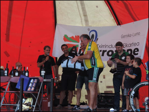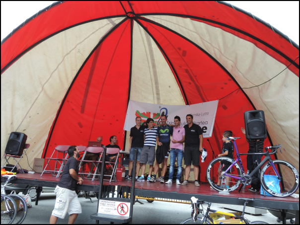 Beste partaideen zain zeuden bitartean, herriko kiroldegian dutxatzeko aukera ere izan zuten askok. Gero, azken taldetxoa heldu ostean, sari banaketa eta zozketak egin zituzten. Ardo, txaparan eta cava boteilak, txirrindularitzarako materiala, arrain kontserbak etab zozkatu zituzten. Tartean, Beñat Intxaustik egunean bertan emandako Movistar taldeko materiala. Giro onean, barre algara artean egin zituzten sari banaketa eta zozketa.