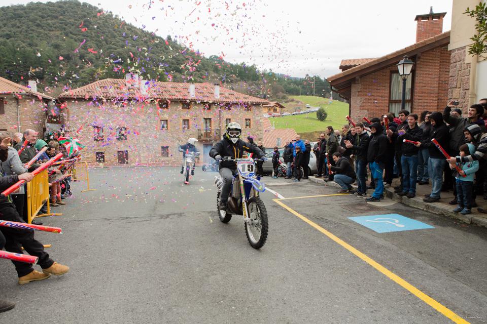 Moto gainean eta 19 zenbakiagaz. Hala agertu zen Txomin Arana Ereñoko moto gidaria zapatuan, txaloz hartu zion jende artera; bera lehenengo, eta gainontzekoak atzetik. Moto hotsa eta erregai usaina, konfetiz girotutako herriko plazan.