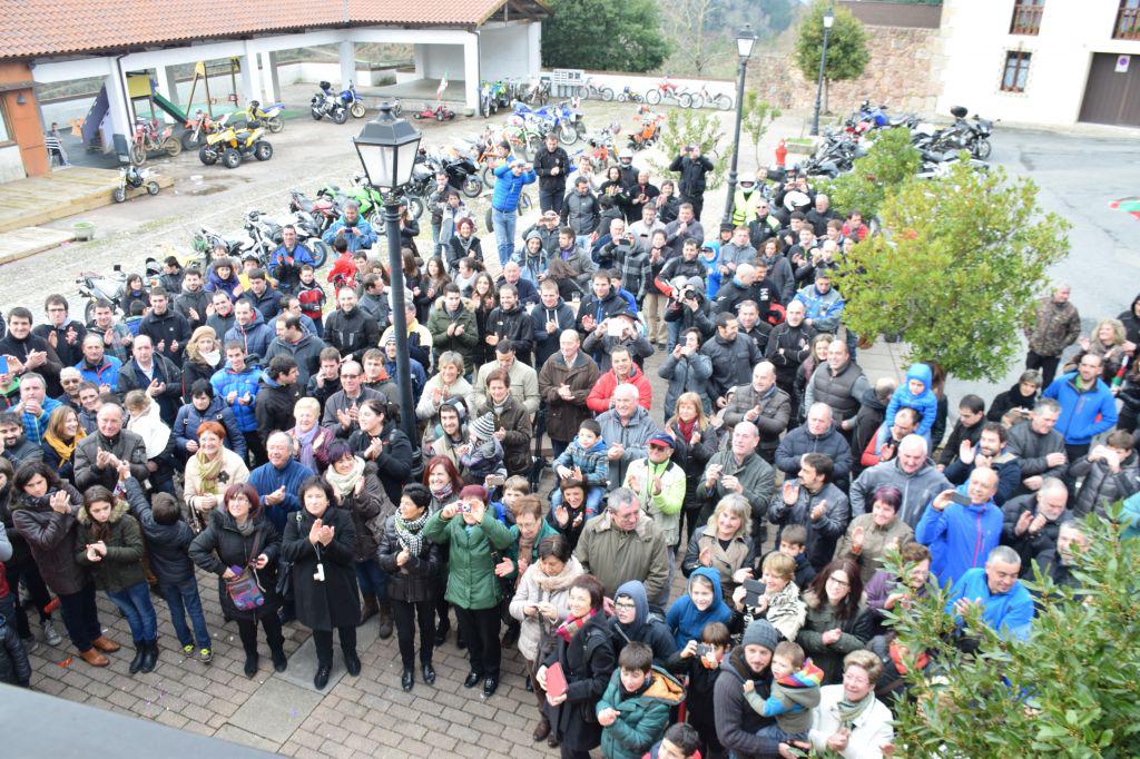 12:30ean puntuan, gogotsu zeuden bidearen alde batean zein bestean herritarrak Arana noiz iritsiko zain. Moto urdinaren gainean iritsi zen orduan ereñarra; behetik plazaraino. Eta atzetik jarraitu zioten hainbat eta hainbat motorzalek.