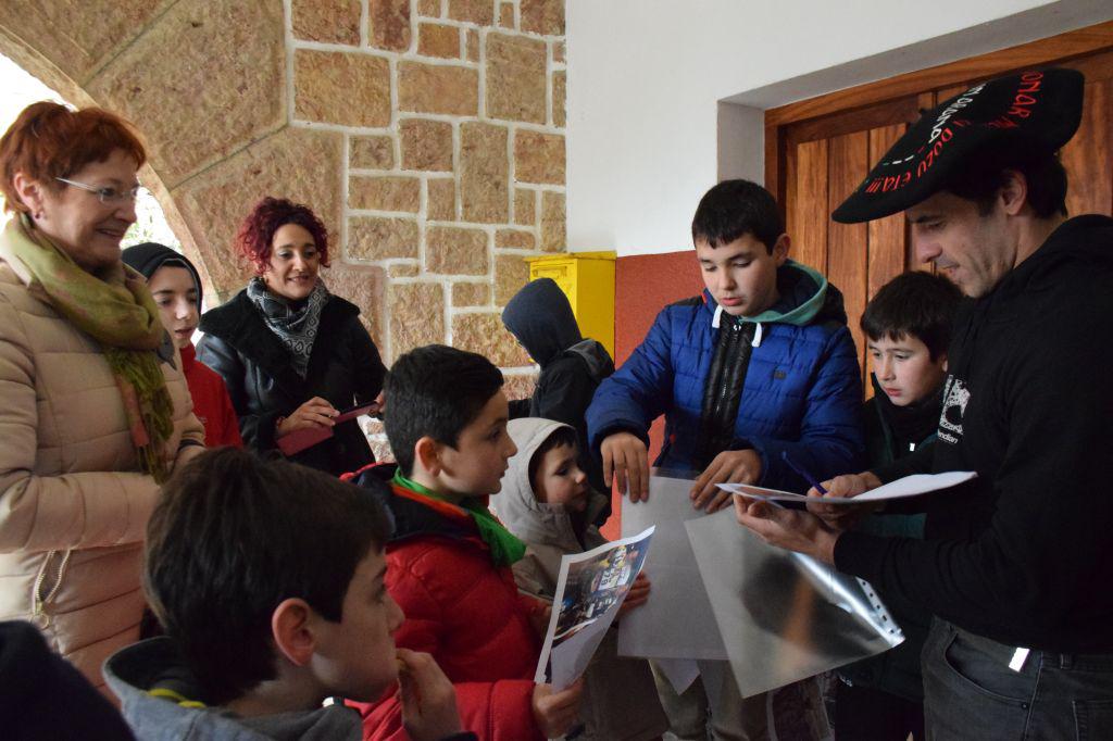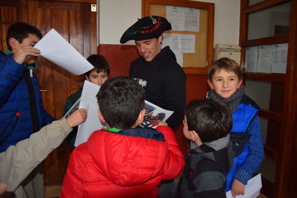 Udaletxeko atetik atera bezain pronto, hainbat umerekin topo egin zuen moto gidariak udaletxeko atarian bertan. Argazkiak eta paperak zituzten eskuetan, Aranaren autografoen zain.