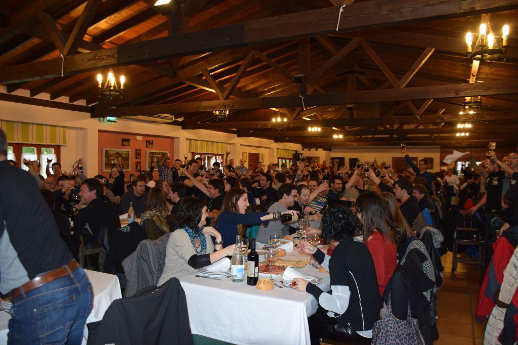 Bazkaltzeko ordua ere iritsi zen Ereñoko Arita-Berri jatetxean. Jangela bete zuten Aranaren lagun, familia eta gertukoek, guztira, 300 bat lagun bilduta.