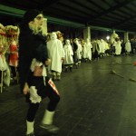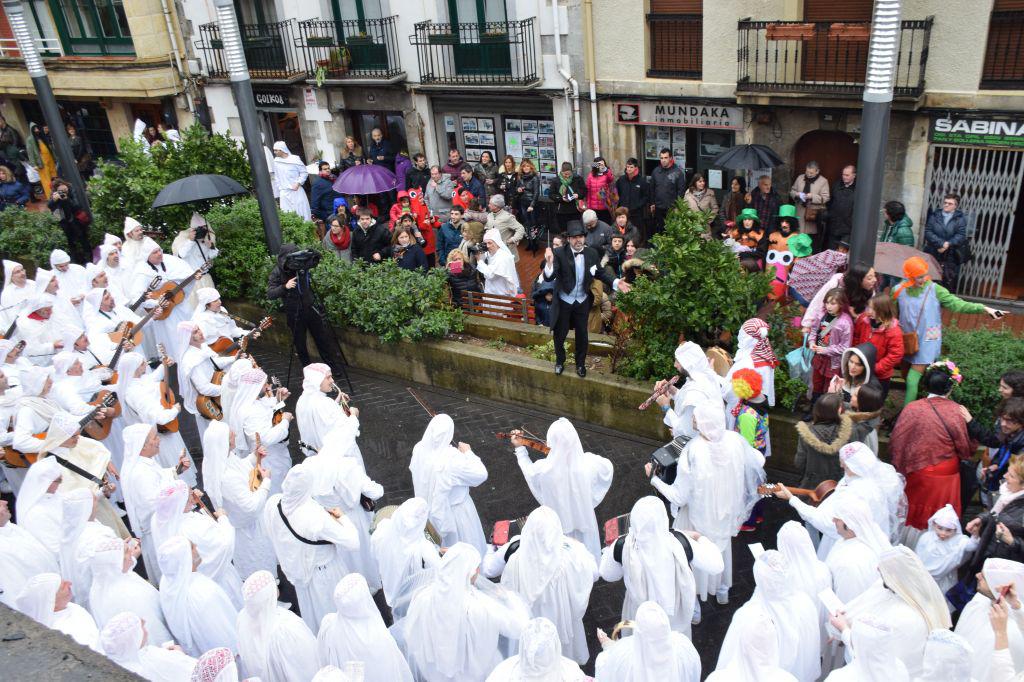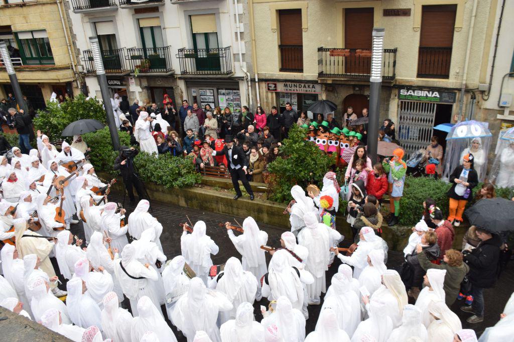 Atorrek ere urteroko ibilbidean aldaketak egin behar izan zituzten atzo, eta aterri zen uneak aprobetxatu zituzten aterpetik atera eta kalean abesteko. Hala ere, beraien doinuekin ere busti zen atzo Mundaka, eguerditik aurrera. Festa giroa ez zuen zapuztu egun umelak, eta mozorro originalak erakutsi zituzten herriko koadrillek.
