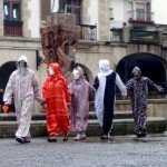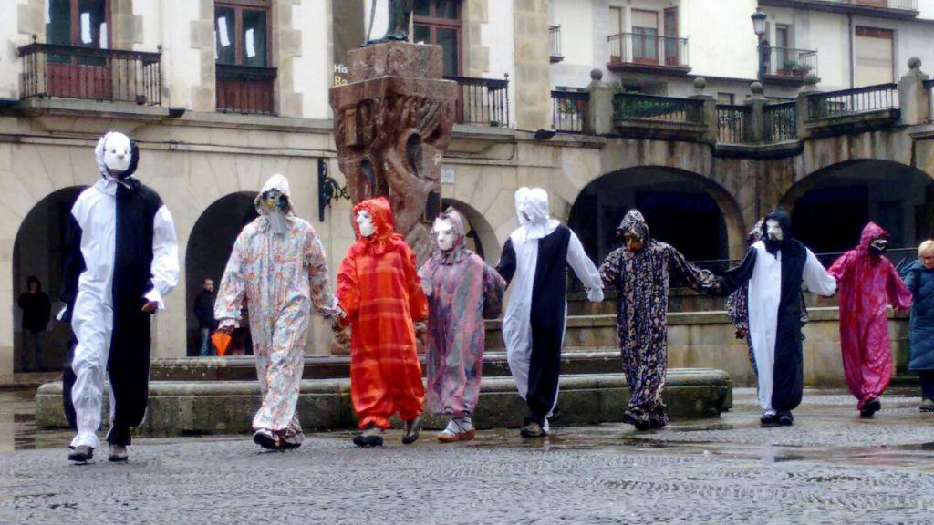 Eguraldi txarrari margotutako aurpegia erakutsi diote Busturialdeko herritarrek asteburu honetan. Egun euritsuak izan diren arren, mozorroak jantzi eta kalera atera dira han eta hemen.