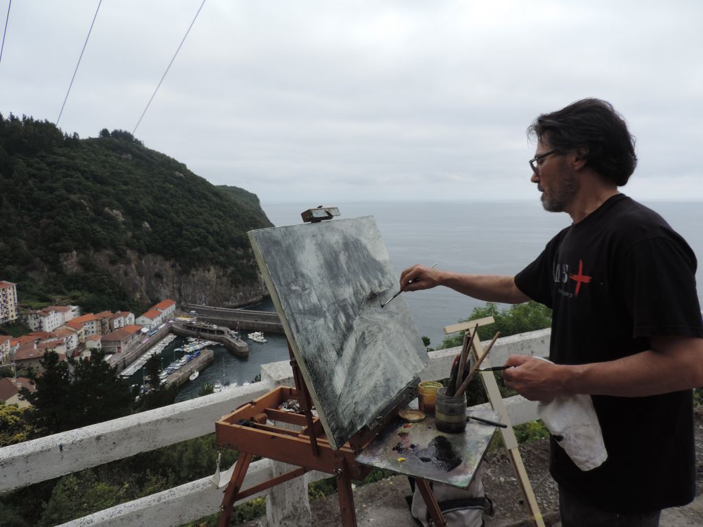 Margolari bat aire zabaleko pintura lehiaketan parte hartzen