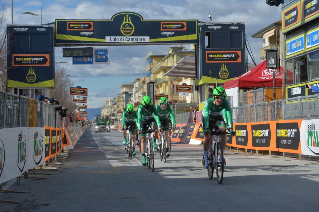 Peio Bilbao bere taldekideekin atzoko lehen etapan (taldekako proba). Argazkia: Tirreno-Adriatiko.