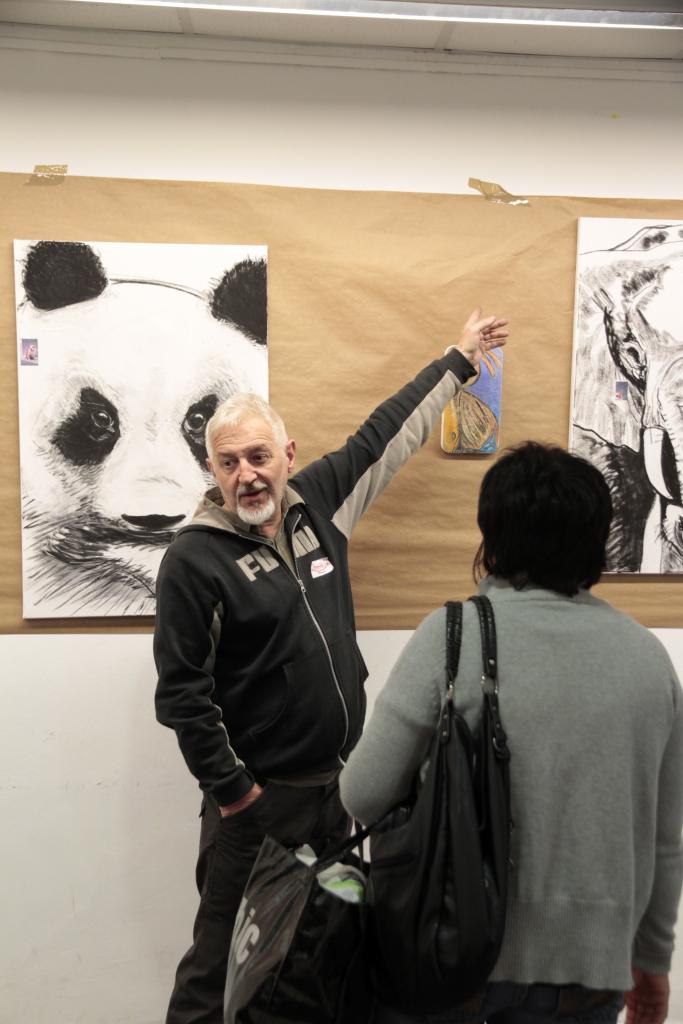 Hamalau animalien begiradak osatzen dute prestatzen ari den erakusketa, bera han aurkitzen da egunero margolanak prestatzen. Igandean berriz, murala arituko da margotzen zuzenean, Libe Lizarraga biolin jolearen musikaren laguntzarekin, eta Eneritz Artetxek irakurriko duen manifestuarekin batera.