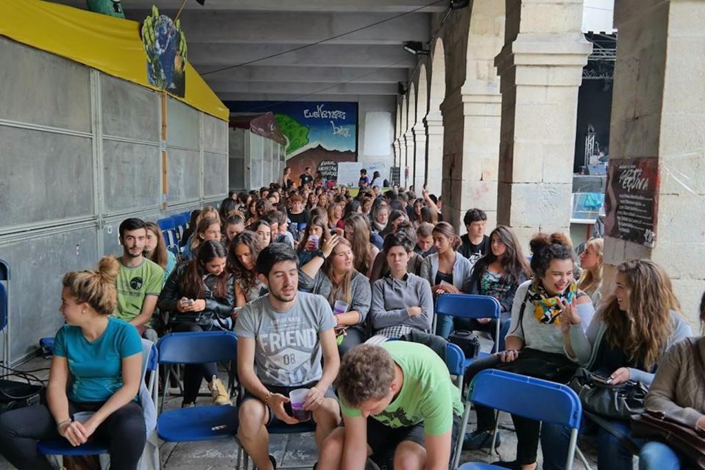 Gazteak 2014ko Gazte Egunean, bertsolarien zain. Egurre