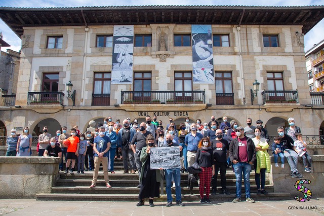 Memoriaren ibilbidean egin zuten herritarrak. Argazkia: Kostan Delgado. 1937ko apirilaren 26an Gernika bonbardatu zuten Kondor Legioko eta Italiako Aviacion Legionariako hegazkinek, eta herria suntsituta geratu zen. Hondamendia eraginda, errautsetatik herria berreraikitzeko lanei ekin zien Francisco Francoren erregimenak. Herria eraikitzeko lan horren zati handi bat, errepublikaren aldeko presoek egin zuten, “frankismoak behartuta”. Errepublikarren lan hori azaleratzeko asmoz, memoriaren mapa egin du Gernika-Lumoko Sarek, eta oroimen ibilbidean elkartu ziren zapatuan 100 lagun inguru.