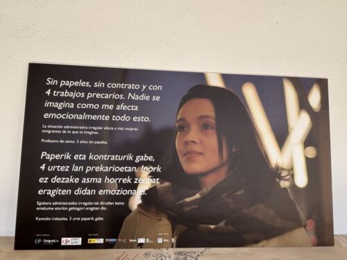 Hego Amerikako, Afrikako, Asiako eta Europako hainbat herrialdetako pertsonek osatutako dago Mugarik Gabeko Etorkinak elkartea, 2008az geroztik “mugarik gabeko gizartea” sustatzeko xedeagaz lan egiten duena. 2014tik zaintza eta etxeko langile diren emakume migratzaileak laguntzeko misioagaz dihardute, batez ere, “egoera irregularrean” daudenak. antolatuta ez daudenak edota guraso bakarreko familia buru direnak. Horiek ikusarazteko asmoz, Irregulartasuna indarkeria anizkoitza eta desentralizatua da argazki-erakusketa antolatu dute, abuztuaren 30era arte [zapatua] Bermeoko Frantziskotarren klaustroan ikusgai egongo dena, 09:00etatik 13:00etara arteko ordutegian.