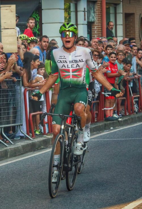 Gorka Corres Errenteriako San Bartolome txirrindulari lasterketako irabazlea.Txebi Arriaga