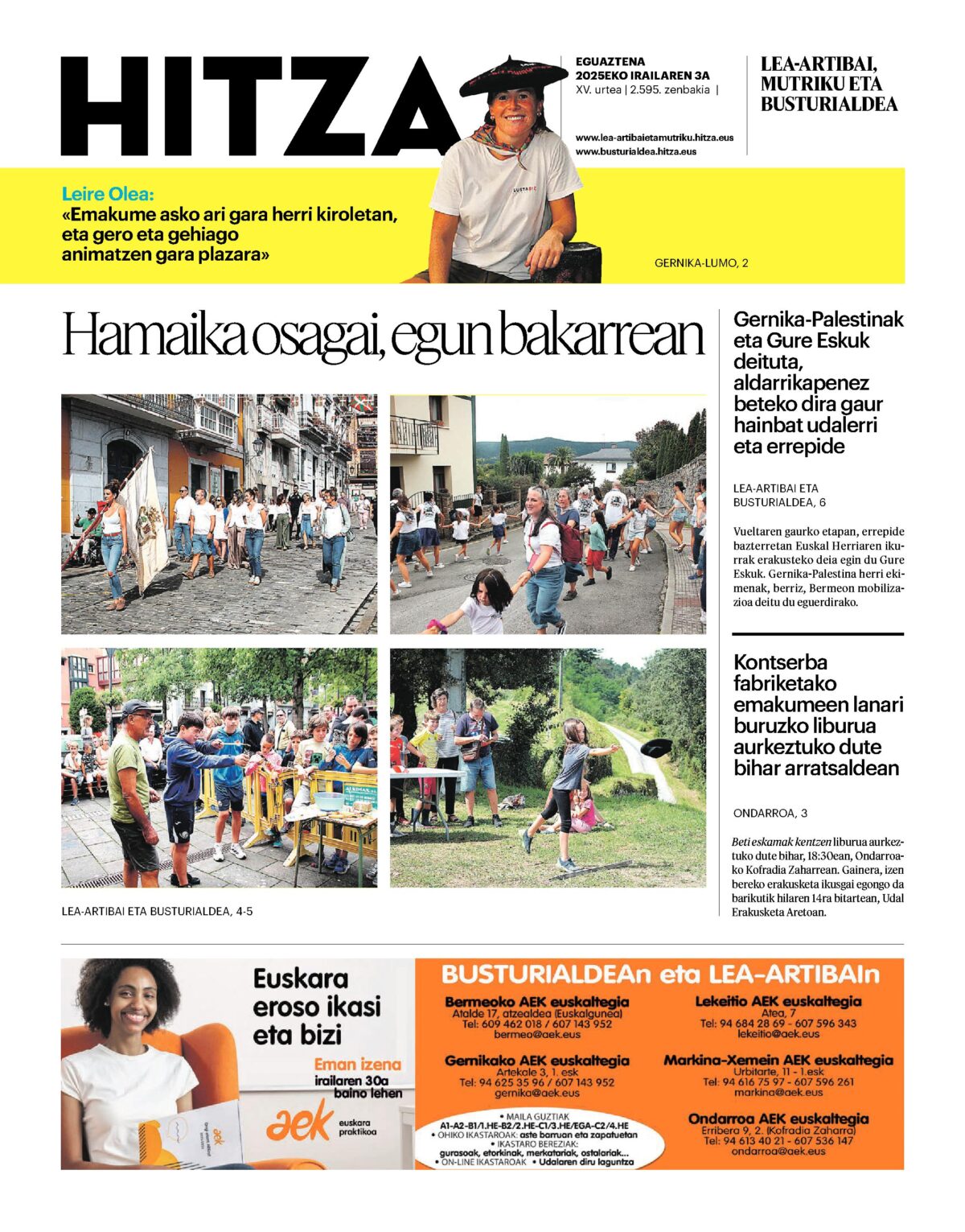 Inpresio arazo bat dela eta irailaren 3ko Lea-Artibai, Mutriku eta Busturialdeko Hitza egunkariko hainbat orritan ‘Tolosaldeko Atariako’ egunkariko albisteak argitaratu dira. Hemen duzue gaurko ale zuzenaren bertsio digitala. Irailaren 4ko egunkariaren barruan joango da irailaren 3ko egunkaria. Barkatu eragozpenak.