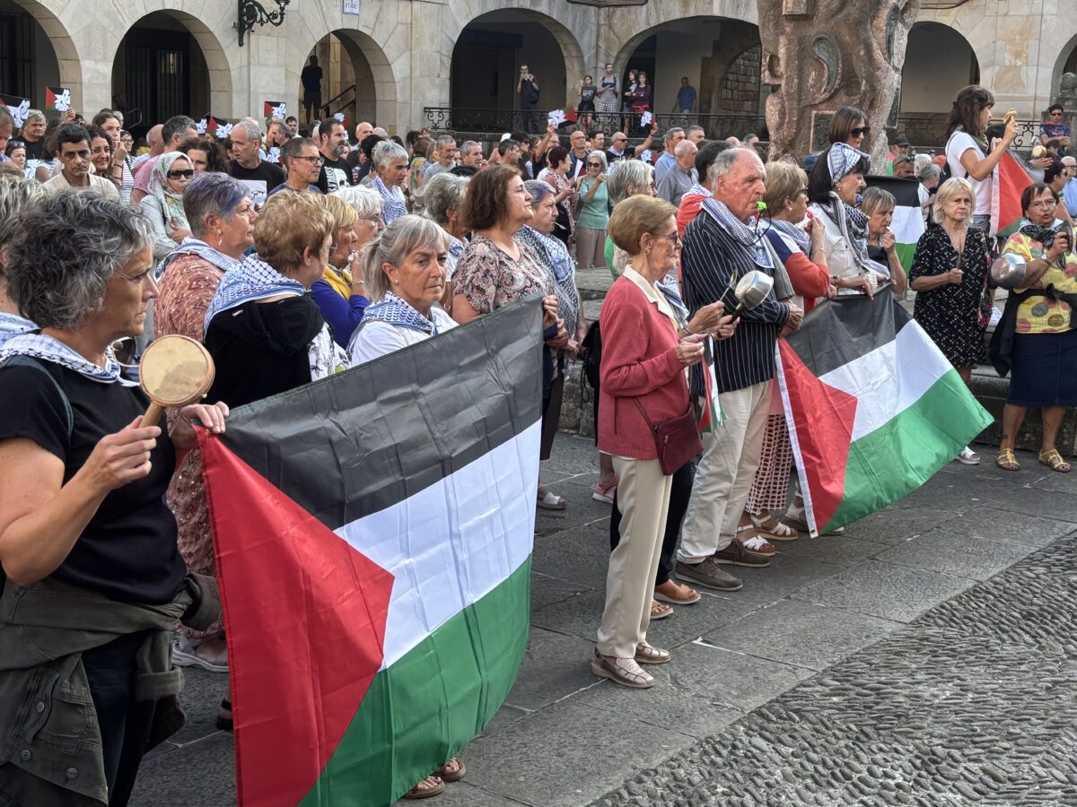 Etxeko kazolekin edo lapikoekin hurbildu ziren udaletxe aurreetara herritarrak, eta zarata atera zuten, egunetik egunera “gogorragoa” den sarraskiaren aurka ahotsa altxatuz: “Gernikaren Euskal Herritik Palestinara doa gure oihua: Nahikoa da! Genozidioari ez!“. Herri handietan ez ezik, txikietan ere bildu ziren bizilagunak, genozidioa gelditzeko oihua herri handi zein txikietatik zabaltzeko asmoz.
