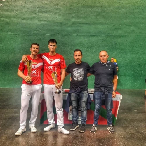 Argazkia: Artza Pilota Elkartea. Artolak eta Iztuetak irabazi dute IV. Bermeo Hiria Inpesca esku-pilota txapelketaren finala. Martitzenean [irailak 16] jokatu zuten lehiaren final handia, Artza pilotalekuan, eta garaileek 22 eta 16ko markagailuagaz ezarri zuten beren legea, Elordiren eta Ezkurdiaren aurkako neurketan. Ez zan kantxaratu ziren pilotari bakarrak izan: finala orduko, binakako lehia ederra egon baitzen. Agirrek eta Morgaetxebarriak Darioren eta Eskuzaren kontra neurtu zituzten indarrak, eta bigarrenek lortu zuten garaipena, 14 eta 22koagaz.