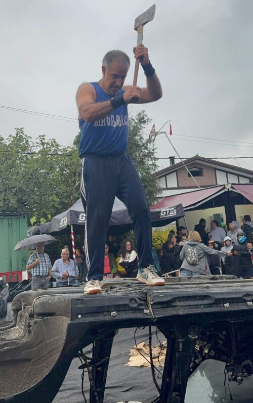 Hain zuzen ere, zapatu arratsaldean, Ernesto Ezpeleta Bihurri aizkolari beteranoak auto eta furgoneta bana aizkoraz erdibitzeko egitekoa eduki zuen. Arratzuarren nahiz ingurutik bertaraturiko herritarren berotasuna lagun, Bihurrik “gogotik sufritu” zuela adierazi dute, baina azkenean lortu zen helburua, antolatzaileen berbetan: “Furgoneta mozteko, ordu laurdeneko tarte behar izan zuen, baina autoa bost minututan erdibidu zuen”. Ekaitz arriskuri aurre egitea izan zen, Arratzuko Piratak Herri Kirol Taldeko antolatzaileen arabera, aizkolariaren erronka handia: “Autoak irristakor egon ziren, eta hark are arriskutsuago eta nekezago bihurtu zuen aizkorakadaz erdibitzea, baina azkenean Bihurrik bere ibilbideari ohore egin zion, eta maila itzelean dagoela frogatu zuen”.