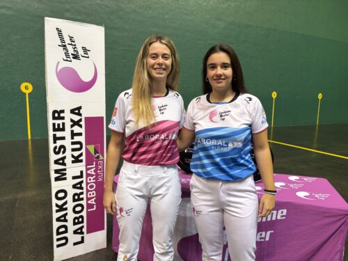 Arrate Bergara eta Enara Gaminde pilotariak, finalaren aurkezpenean.