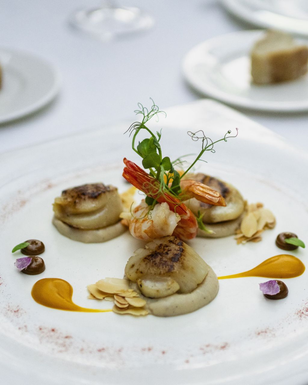 Gaztelu Maitea Jatetxearen menu zabal eta koloretsuaren laginetako bat da bieira ketua, marinatutako azalore kremarekin, almendrekin eta berakatz beltzarekin prestatzen dutena, otarrainxkez lagunduta.