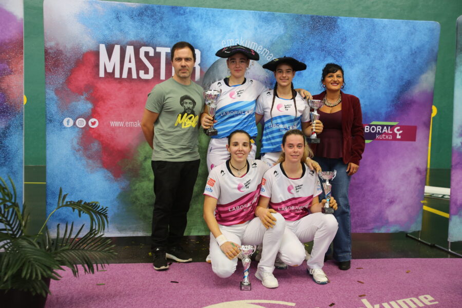 Udako Master Laboral Kutxa Txapelketa irabazi zuten atzo (irailak 28) Aizane Ibarrolak eta Enara Gamindek Olatz Arrizabalagaren eta Arrate Bergararen aurka. 22-7ko markagailuagaz nagusitu ziren Bermeoko Artza pilotalekuan, euren legea ezarriz.