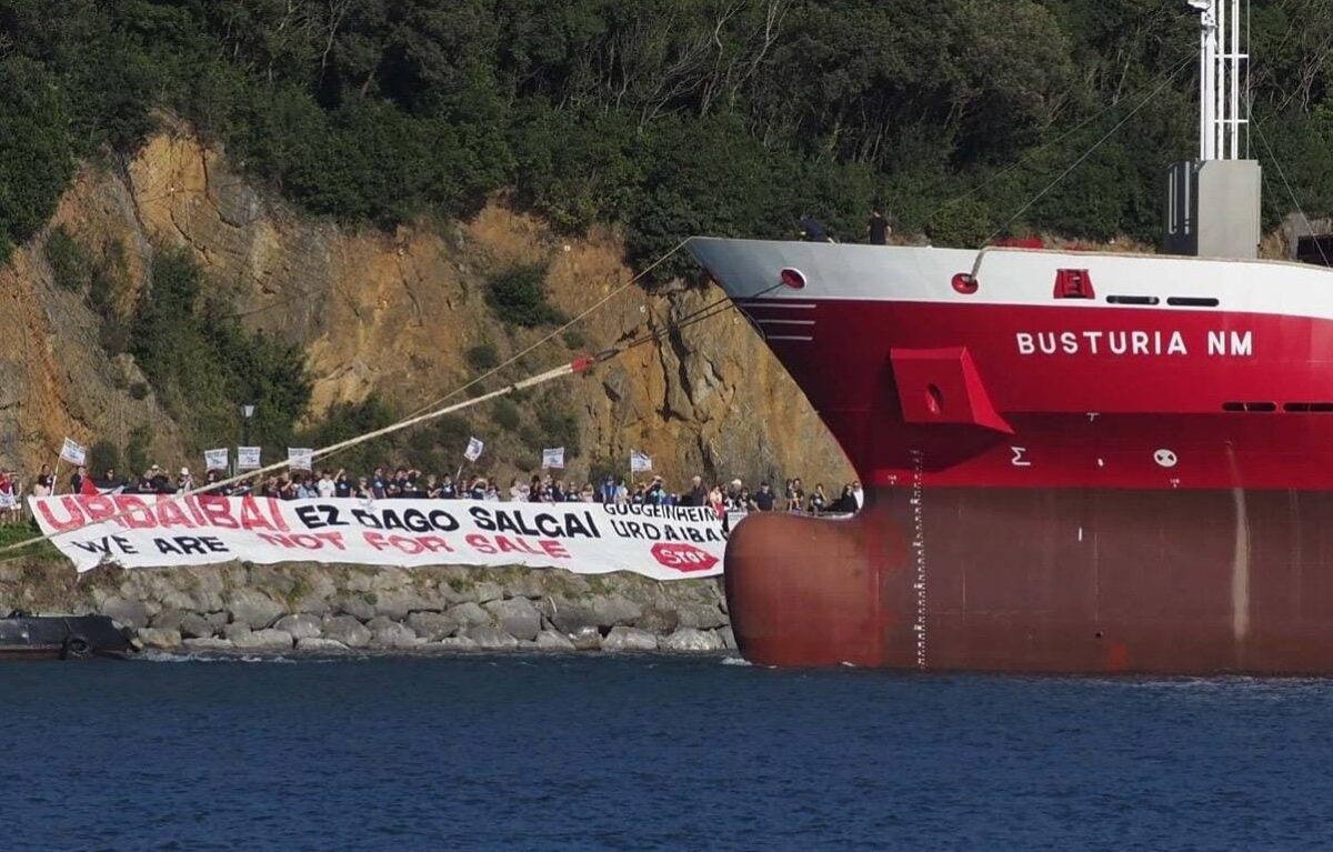 Herritarrak, Laidako elkarretaratzean.Guggenheim Urdaibai Stop Guggenheim Urdaibai Stop herritar plataformako kideek elkarretaratzea egin zuten atzo [urriak 7], Ibarrangeluko Laida hondartzan, “politikariei nahiz agintariei ardura eta seriotasuna” eskatzeko asmoz. Eragile taldeko partaideek duela urte bi, 2023ko uztailaren 4an, Aitor Estebanek “harrotasunez” egindako adierazpenak gogoratu zituzten, beren salaketa egiterakoan: “Estebanek adierazi zuen Espainiako Gobernuari 40 milioi euro kendu zizkiotela, Guggenheim Urdaibai makroproiektuari azken bultzada emateko. Hain zuzen ere, Bizkaiko Foru Aldundiak eta Espainiako Trantsizio Ekologikorako Ministeritzak duela urte bi adostutako hitzarmenak argi eta garbi azaltzen du, besteak beste, Murueta Ontziolaren jabetzapeko 42.384 metro koadroko azaleradun eremua deskontaminatzeko eta lehengoratzeko asmoa, baita ontziolaren eraikin hondakinak botatzekoa ere”.