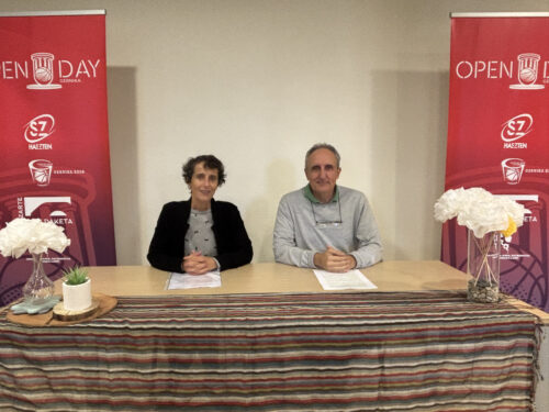 Mirenlur Santiago eta Koldo Kortabitarte, Open Dayaren aurkezpenean.