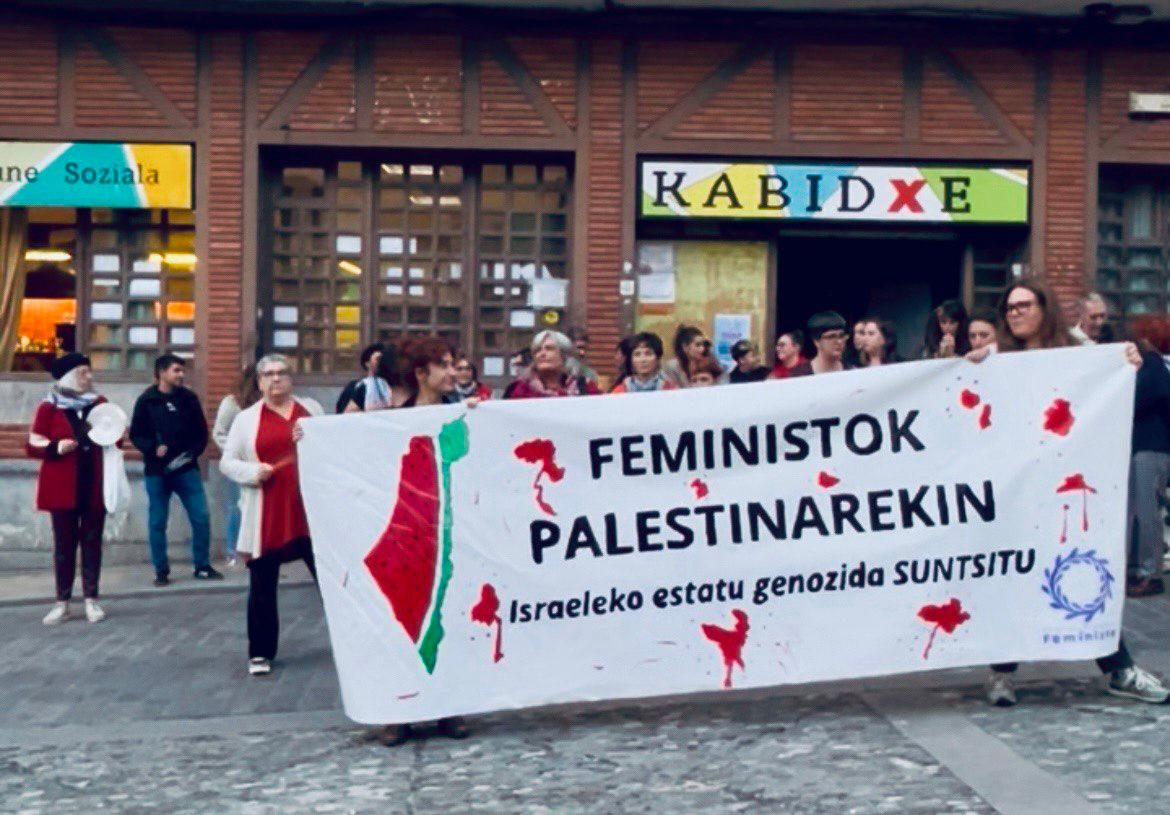Feministok Palestinarekin lelopean, adierazi zuten palestinarrak jasaten ari direnak izen propioa duela: “Genozidioa”. Basakeriaren aurrean “antolatzeko prest”, Global Sumud ontzidiari babesa erakusteko aprobetxatu zuten herritarrek, eta emakume palestinarrek helarazitako mezua argi eta garbi utzi zuten: “Alde batetik, emakumezko palestinarrak beren-beregi jasaten ari diren genozidioa salatu gura dugu; bestetik, Palestinaren aldeko mobilizazio feministak antolatu; horrez gain, Israelen okupaziozko erregimena betikotzen duten enpresa zein erakundeei boikota adierazi nahi diegu”. Emakumeen gorputzak gerra egoeretako “lehen lur okupatuak” direla nabarmendu zuten, “haurrak” ahaztu barik. Hain zuzen ere, azken hilabeteotan 20.000 ume inguru erail ditu Israelek, eta, gainera, “gosetea arma gisa” baliatzen ari dira egun.