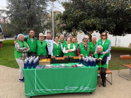 Minbiziaren aurkako elkarteko Bermeoko boluntariak egin diete harrera txirrindulariei.