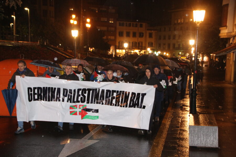 Gernika-Palestina Deialdi Herritarrak deituta, eskualdeko herritarrek genozidioaren "zuriketa" salatu dute, 'Gernika Palestinarekin BAT' lelopeko manifestazioan. Israelek genozidioagaz aurrera segitzen duen artean, bertako talde batek nazioarteko txapelketarik "jokatu beharko ez lukeela" salatu dute.