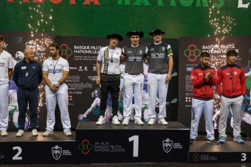 Argazkia: Pilota Nazioen Liga. Bilbok 2030ean Munduko Pilota Txapelketa hartuko du, eta lehia handi horren estreinako urratsa azaro amaieran egin dute: Pilota Nazioen Liga. Euskal Herrian jokatu duten txapelketa sailkapen torneoa izan da datorren urtean San Luisen (Argentina) jokatuko duten Munduko Txapelketarako. Hilaren 23tik 30era bitartean lehiatu dute, Bilboko Bizkaia eta Barakaldoko Barakaldes frontoietan. Hainbat pilota kategoria zein modalitate lehiatu dituzte 36 metroko kantxetan, eta horietako batzuetan protagonista izan da etxeko taldea: Euskal Selekzioa. Ikusleek babes handia eman diote lehiaketari, eta pilotalekuetako harmailak bete dituzte jardunaldiz jardunaldi.