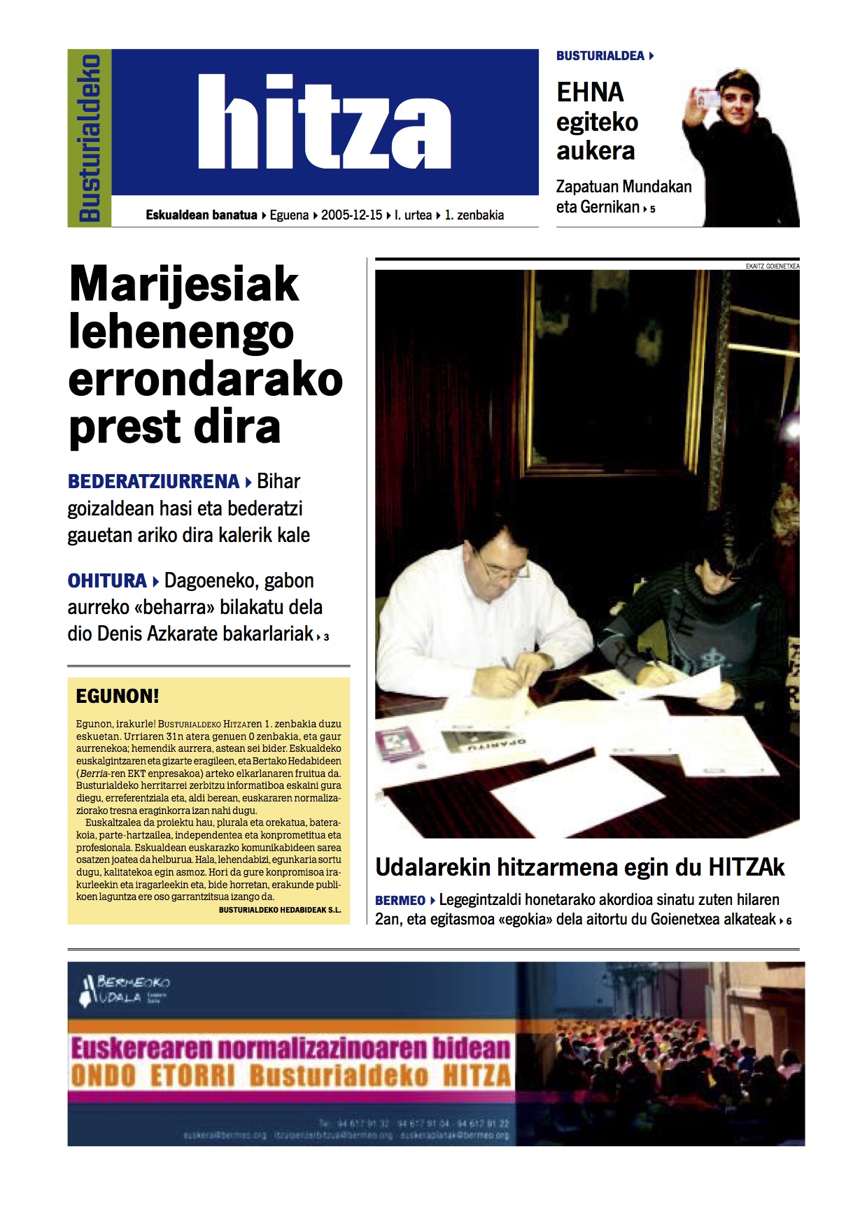 20 urteko ibilbidea betetzekotan da Busturialdeko Hitza. 2005.urteko abenduaren 15ean kaleratu zen lehenengo alea, baina, aurretik, urriaren 31n, Urriko Azkenengo Astelehenean banatu zuten 0 alea. Bi hamarkada hauetan eskualdeko albisteak zabaldu ditu, eskuz esku eta etenik barik. Herrigintzatik jaio zen, eta herrigintzari ere zor dio bizirik irautea, eta beraz, elkarrekin ospatu gura du gaztaro betean egon izana.