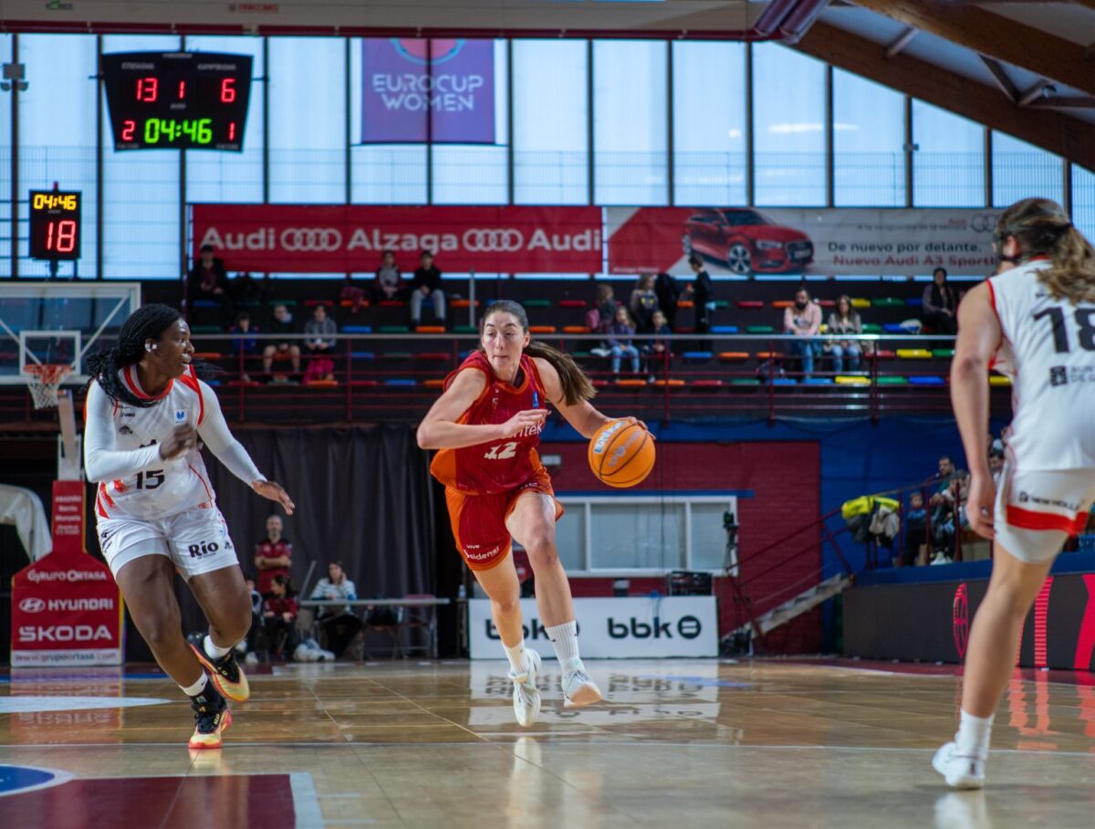 Etxekoek indartsu hasi zuten norgehiagoka, partiduari euren erritmoa erantsiz. Vonleh-k bere lehen puntuak saskiratu zituen Ane Olaeta eta Angela Salvadoresen babesagaz. Nahiz eta granateak jokuan nagusi izan ziren, saskiratze falta nabaria izan zen. Vonleh-k, ordea, galiziarrek ordura arte sartutako puntu berdinak sartu zituen segidan, markagailuan 15-8ra heldu arte. Duran Maquinaria Ensinoko Alicia Floresek, baina, aurkariak bizirik mantendu zituen, 9 puntu poltsikoratuz, eta beraz, markagailua estutuz; 24-21.