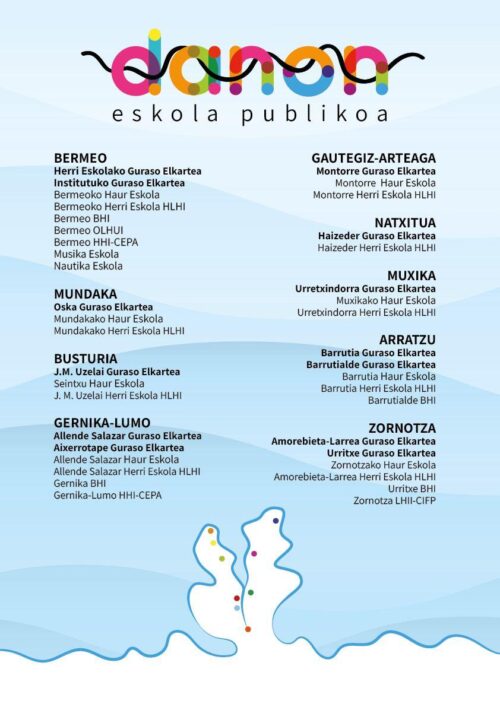 Ilusioa da hitza. Busturialdeko eta Zornotzako eskola publikoak “ilusioz eta gogotsu” daude. Gogotsu, eta indartsu. Izan ere, Bermeotik Zornotzara bitarteko bederatzi herrietako guraso elkarteek mugarri bat ezarri dute eskualdeko hezkuntza-komunitatearen historian: sarea ehuntzen jarraitu nahi dute, eta horretarako indarrak batu dituzte; Danon Eskola Publikoa sarea sortu dute.